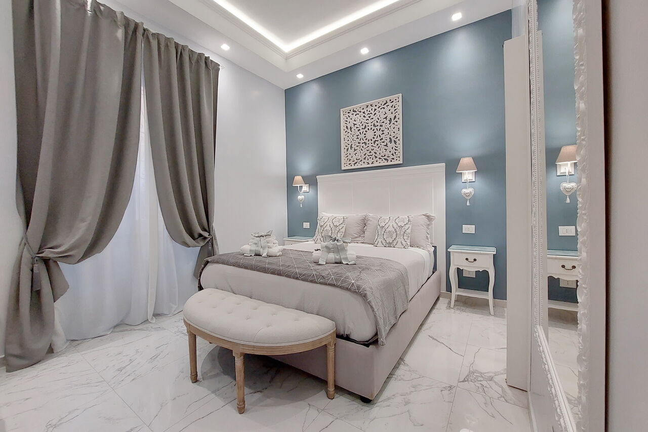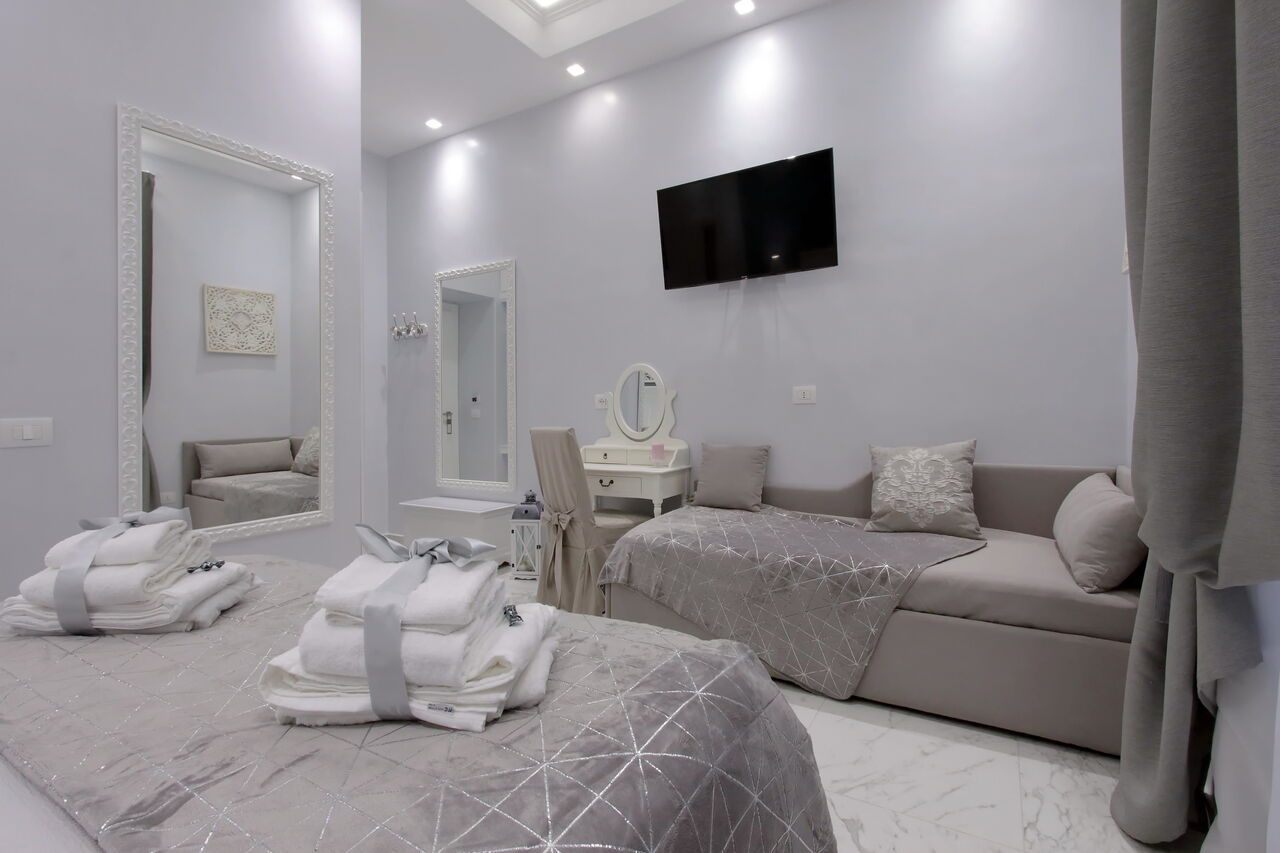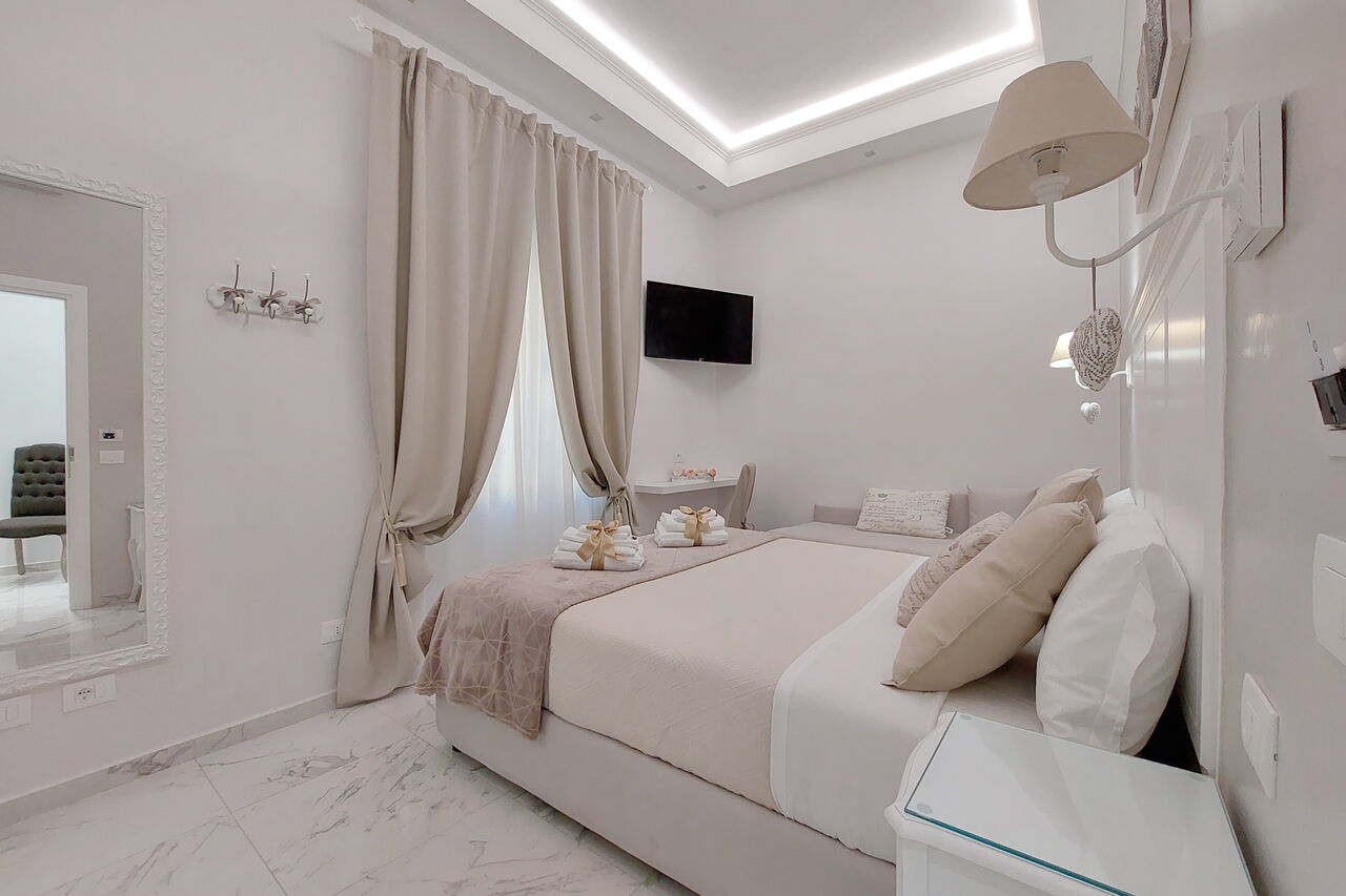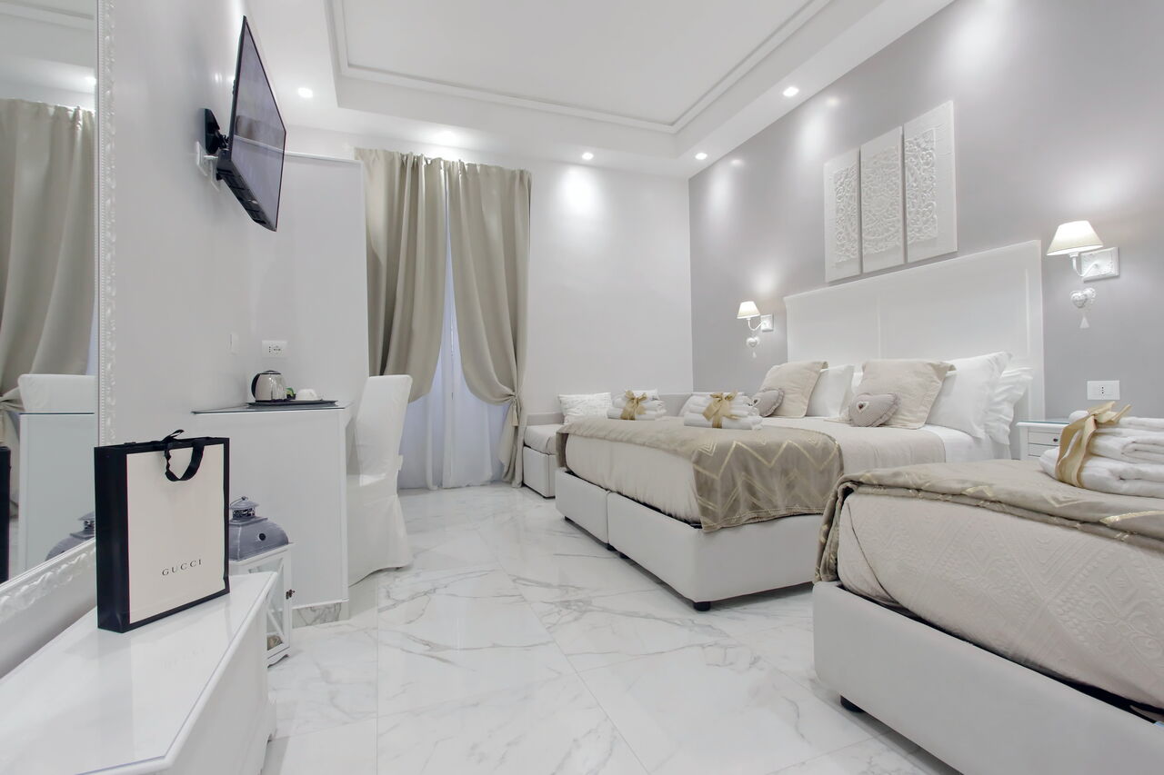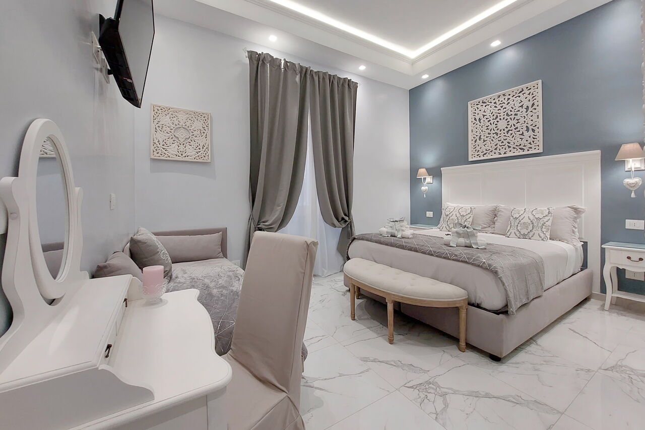 Camere luminose provvisti di aria condizionata, scrivania, bollitore, frigorifero, cassaforte, TV a schermo piatto, arredate con raffinata eleganza dotate tutte di bagno en suite privato con bidet e un raffinato contesto esterno.