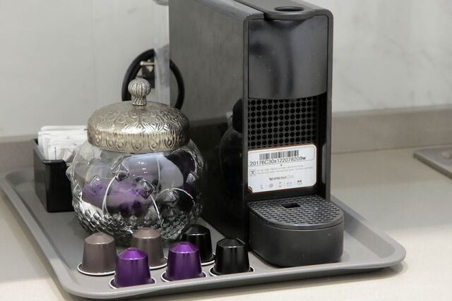 Salone in comune con angolo cottura, microonde e macchina Nepresso